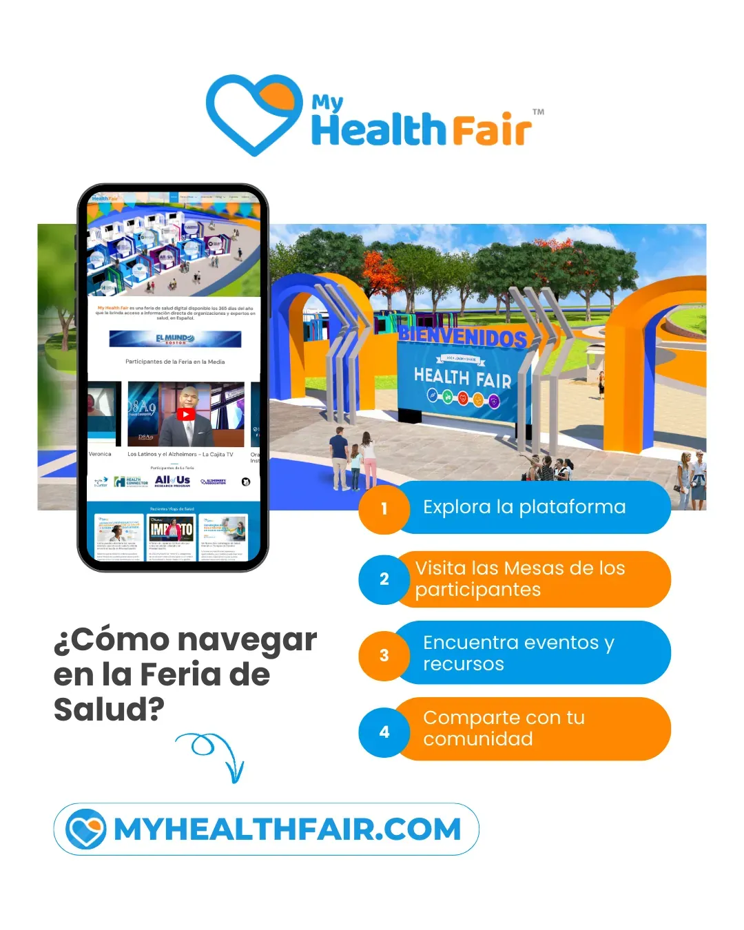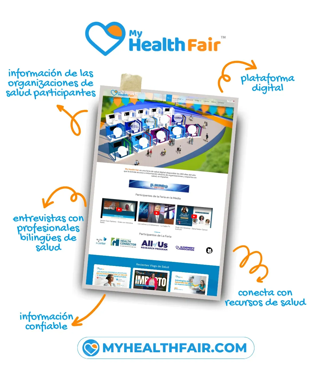 My Health Fair es tu plataforma digital para acceder a educación y recursos de salud en inglés y español. Con información de expertos y organizaciones confiables, conecta a la comunidad con información sobre cáncer, diabetes, salud mental y alzheimer.